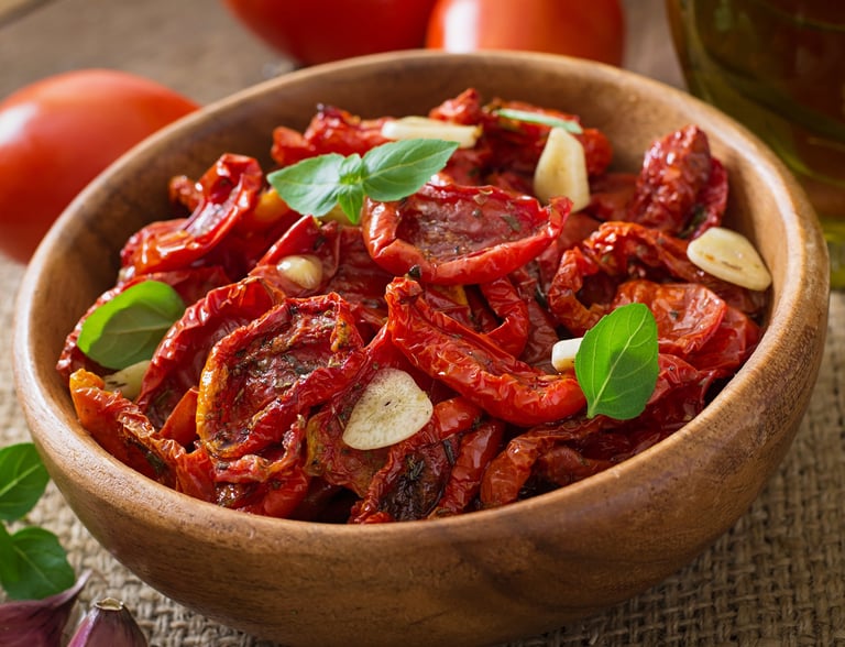 Sun-Dried Tomatoes: High-quality tomatoes sun-dried under the Egyptian sun, combining flavor, value, and traceability.